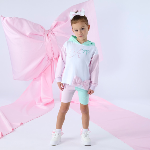 White, Mint & Pink Hoody & Cycling Short Set