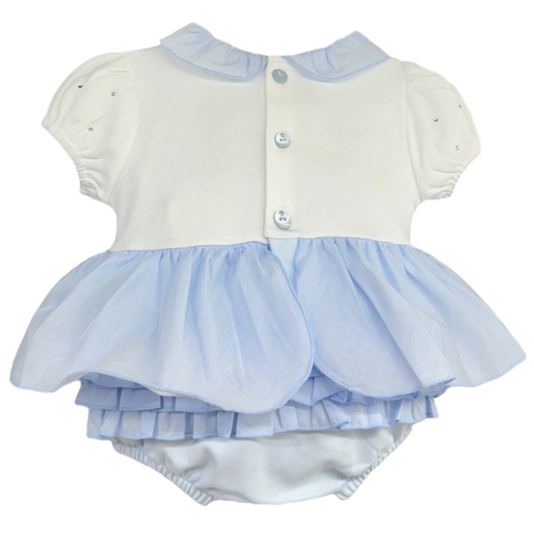 Generic selectors Exact matches only Search in title Search in content Post Type Selectors Whats New Girls Pre-order 0 – 24 months 2 Years+ Bodysuits & Vests Cardigans Nightwear Boys Pre-order 0 – 24 months 2 Years+ Bodysuits & Vests Baby Babygrows Baby Outfits Bodysuits & Vests Blankets & Shawls Pram Accessories Socks & Tights Footwear Accessories Hoops & Underskirts Dolls, Prams & Toys Hair Accessories Hats Bibs Frilly Knickers Special Occasion Brands Sale +44 7500 926 979 07785747815 bobbyann39@aol.com Facebook Instagram ## Mini basket to go here ## Whats New Girls Pre-order 0 – 24 months 2 Years+ Bodysuits & Vests Cardigans Nightwear Boys Pre-order 0 – 24 months 2 Years+ Bodysuits & Vests Baby Babygrows Baby Outfits Bodysuits & Vests Blankets & Shawls Pram Accessories Socks & Tights Footwear Accessories Hoops & Underskirts Dolls, Prams & Toys Hair Accessories Hats Bibs Frilly Knickers Special Occasion Brands Sale Home Shop Girls 0 - 24 months Mintini Blue Diamanté Romper Mintini Blue Diamanté Romper£28.00 1m£28.00Only 1 left in stock 3m£28.00Only 2 left in stock 6m£28.00Only 2 left in stock 9m£28.00Only 1 left in stock Size Choose an option1m 3m 6m 9m Clear - Mintini Blue Diamanté Romper quantity + Add to basket SKU: N/A Categories: 0 - 24 months, Baby, Baby Outfits, Brands, Girls, Mintini Baby, New in Description Additional information Description Mintini Baby SS26 White & Blue Jersey Romper Additional information Gender Baby, Girl Size 1m, 3m, 6m, 9m Related products 50%Phi Clothing Ivory & Gold Velour Sweater £35.00 Original price was: £35.00.£17.50Current price is: £17.50. Piccola Speranza Hair Bow £7.50 50%Unisex Tartan Jam Pants, White £19.99 Original price was: £19.99.£10.00Current price is: £10.00. 50%Babidu Short Sleeve Peter Pan, Pink £6.50 Original price was: £6.50.£3.25Current price is: £3.25.